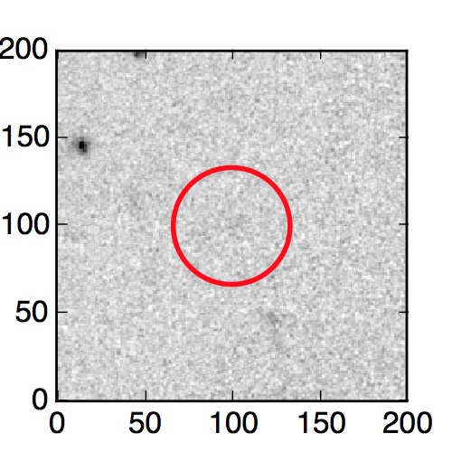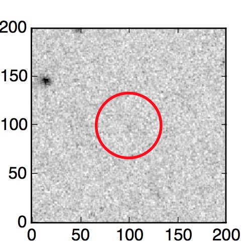 The red circle in the various panels is 1" in radius. The images are 6"x6".