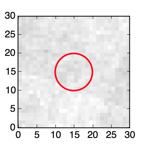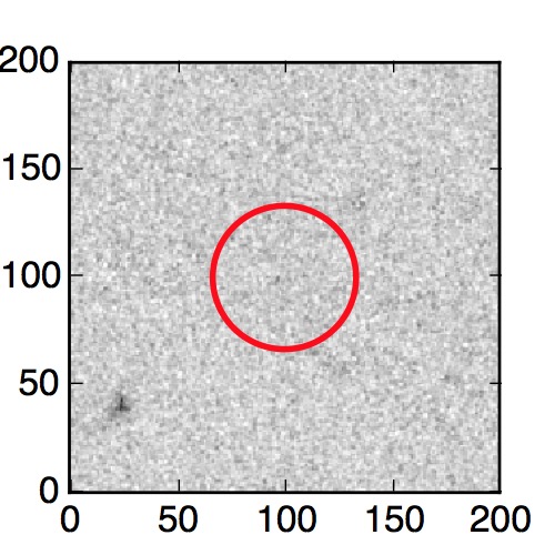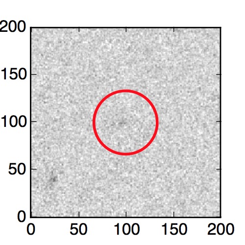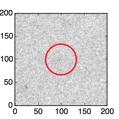 The red circle in the various panels is 1" in radius. The images are 6"x6".