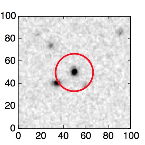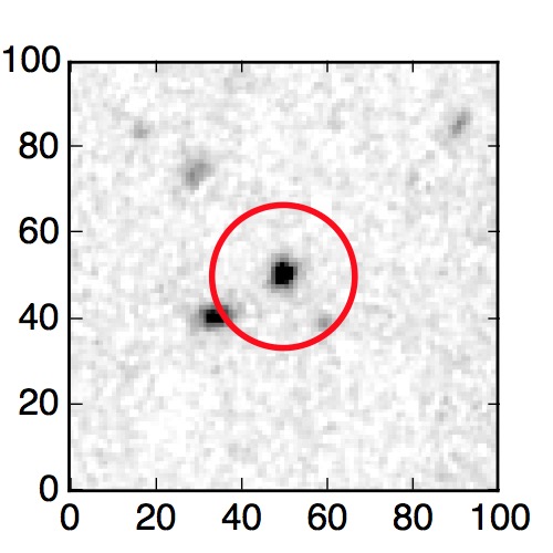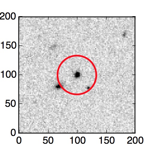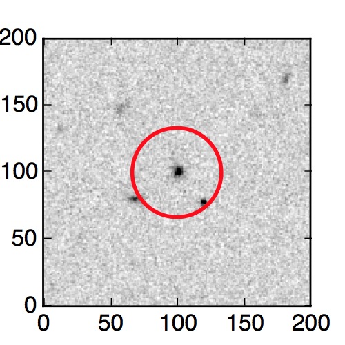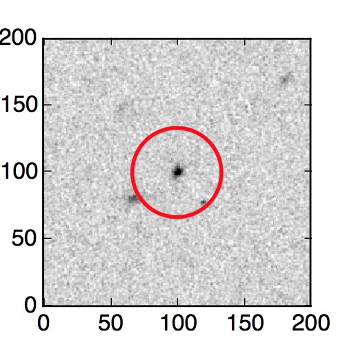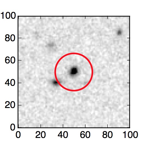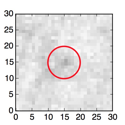 The red circle in the various panels is 1" in radius. The images are 6"x6".
