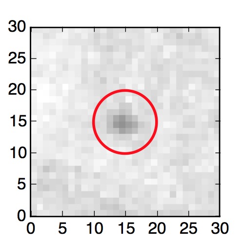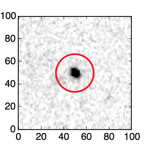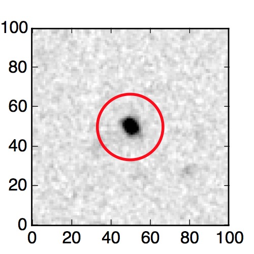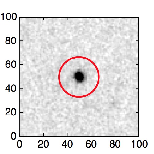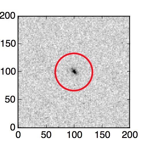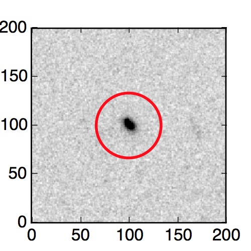The red circle in the various panels is 1" in radius. The images are 6"x6".