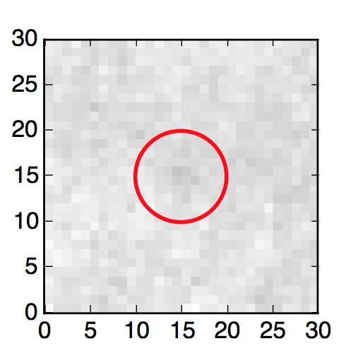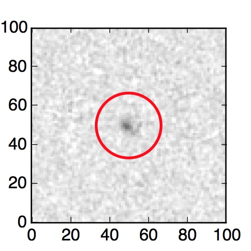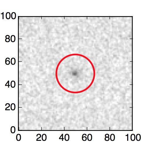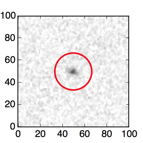 The red circle in the various panels is 1" in radius. The images are 6"x6".