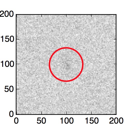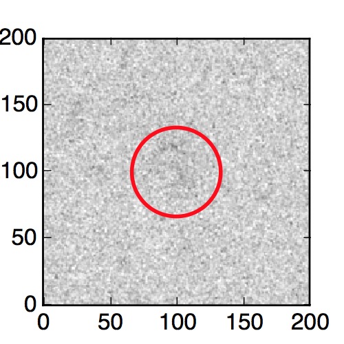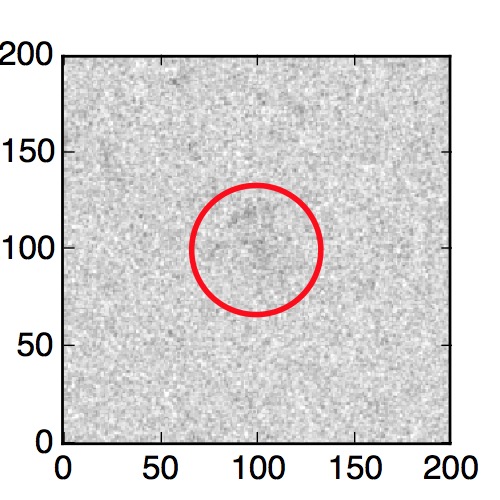 The red circle in the various panels is 1" in radius. The images are 6"x6".