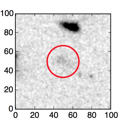 The red circle in the various panels is 1" in radius. The images are 6"x6".