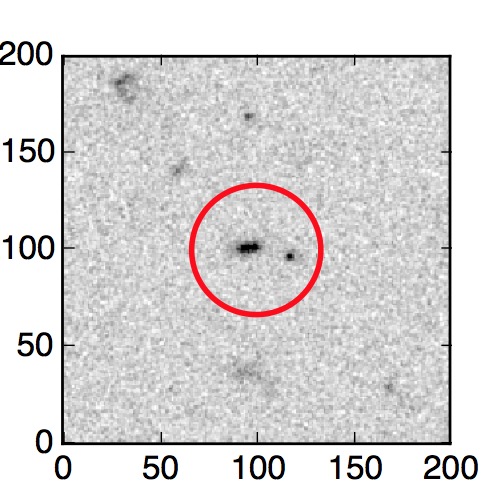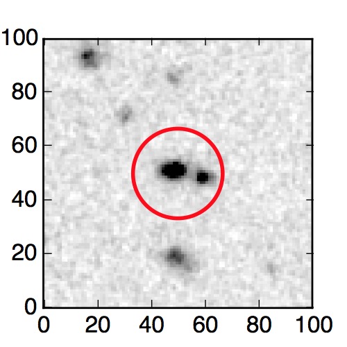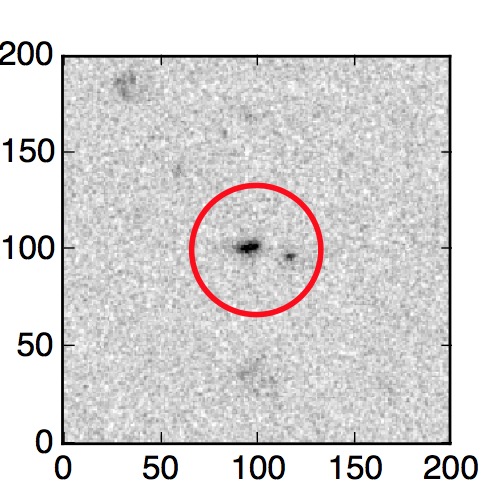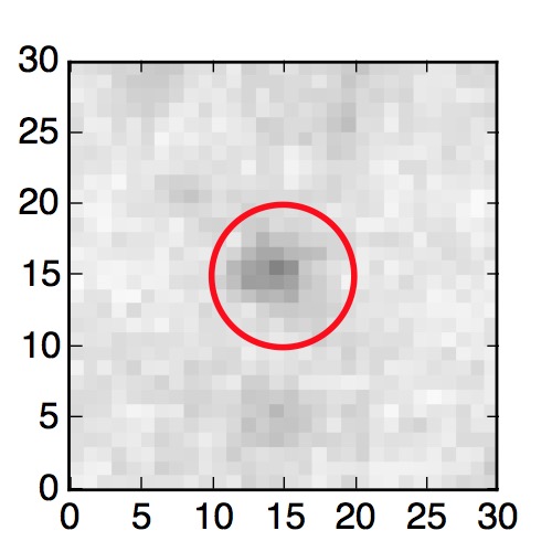 The red circle in the various panels is 1" in radius. The images are 6"x6".