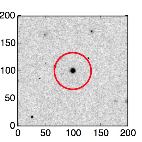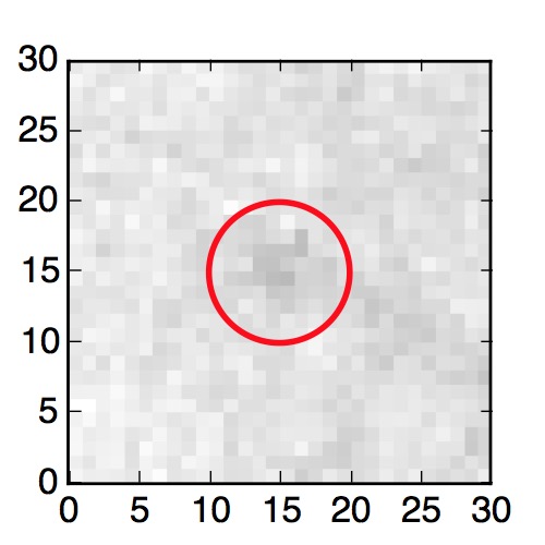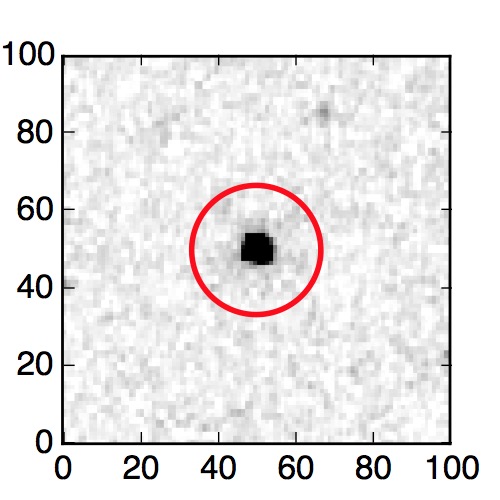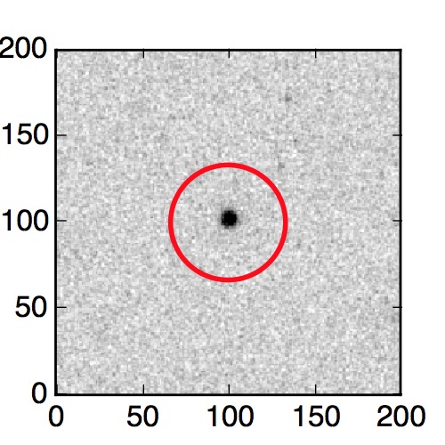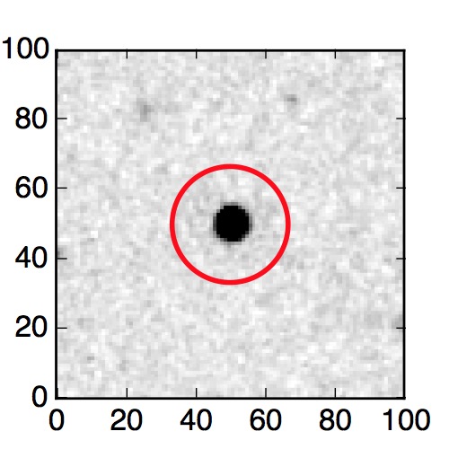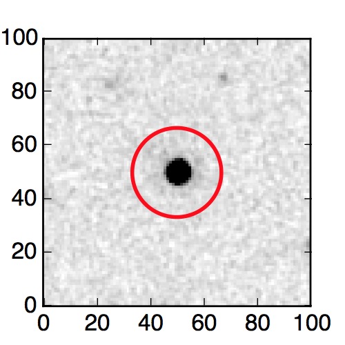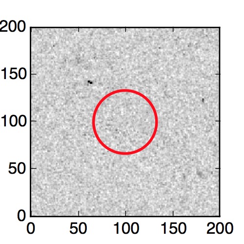 The red circle in the various panels is 1" in radius. The images are 6"x6".
