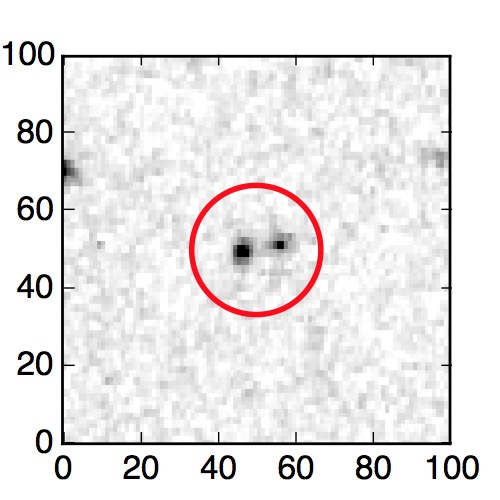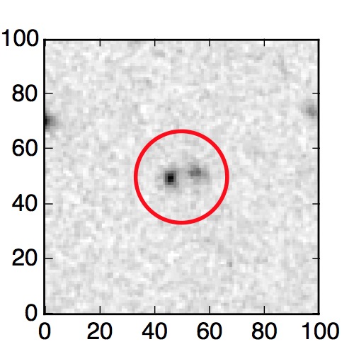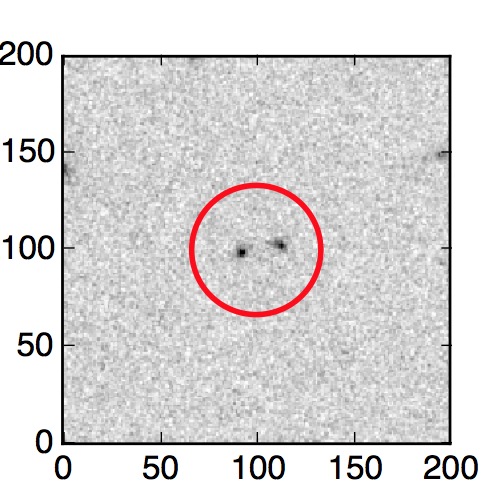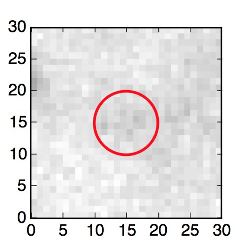 The red circle in the various panels is 1" in radius. The images are 6"x6".