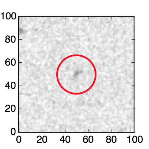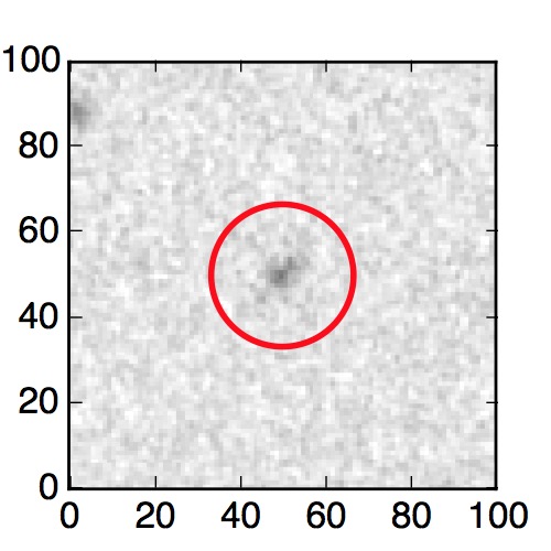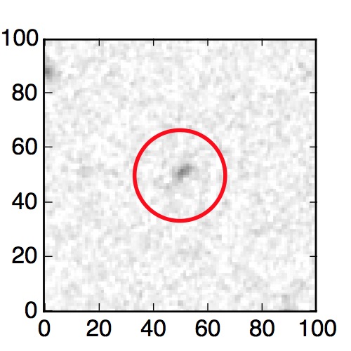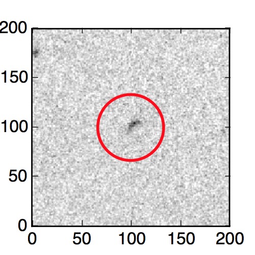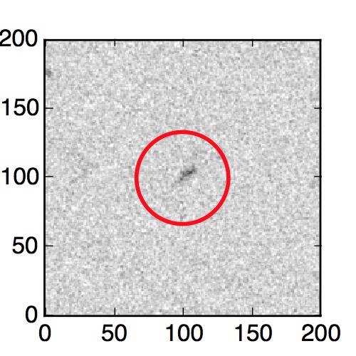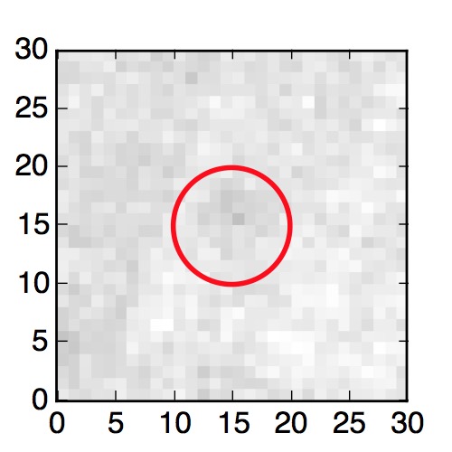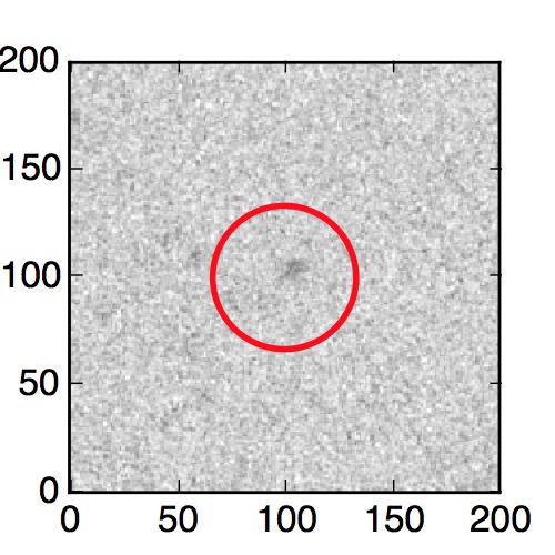 The red circle in the various panels is 1" in radius. The images are 6"x6".