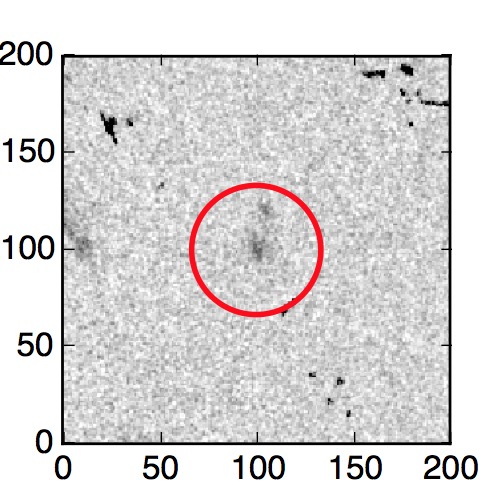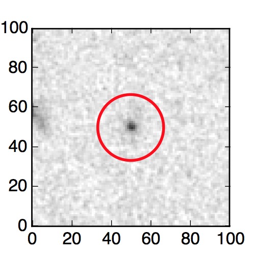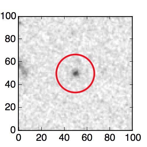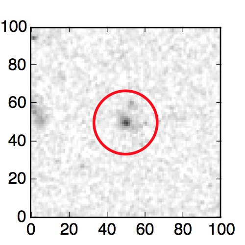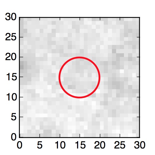 The red circle in the various panels is 1" in radius. The images are 6"x6".