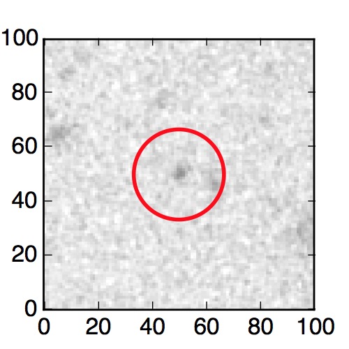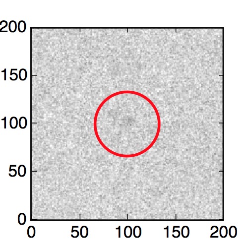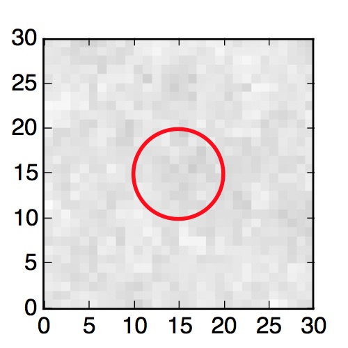The red circle in the various panels is 1" in radius. The images are 6"x6".