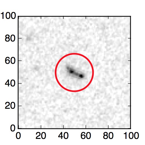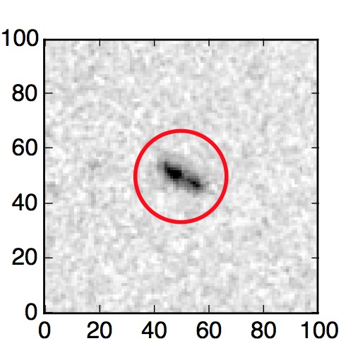 The red circle in the various panels is 1" in radius. The images are 6"x6".