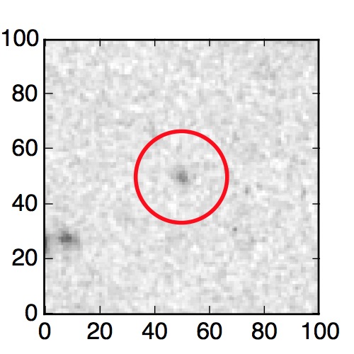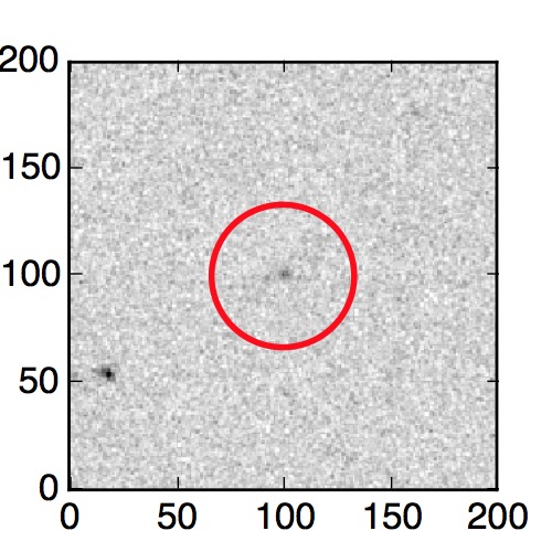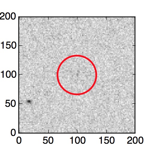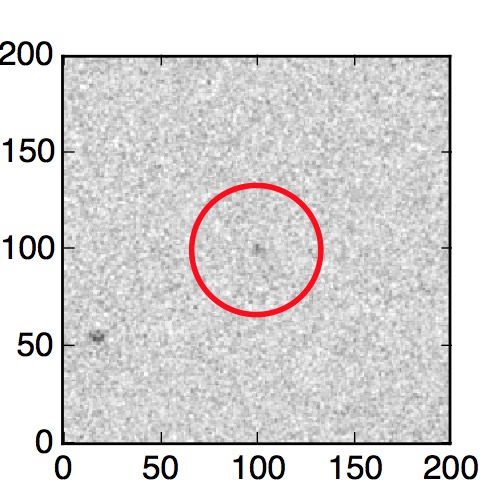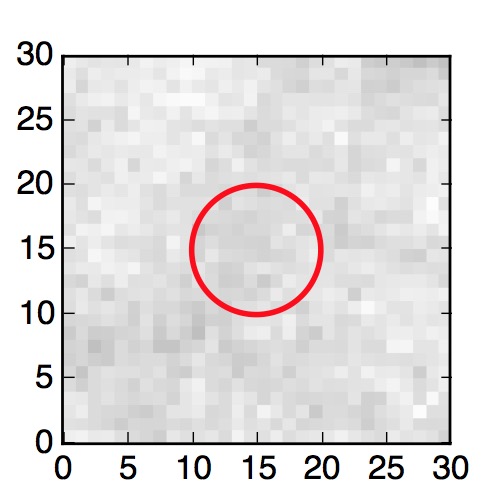 The red circle in the various panels is 1" in radius. The images are 6"x6".