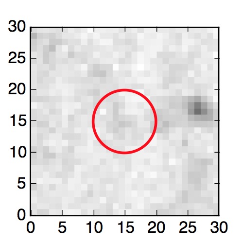 The red circle in the various panels is 1" in radius. The images are 6"x6".
