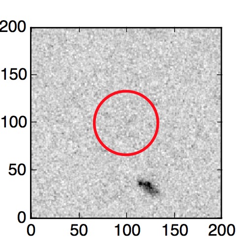 The red circle in the various panels is 1" in radius. The images are 6"x6".