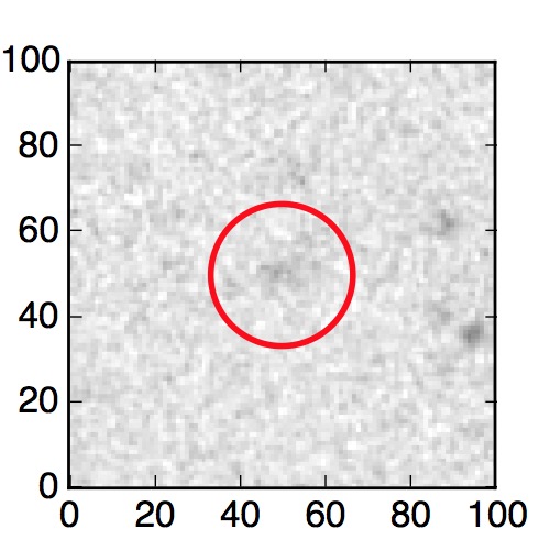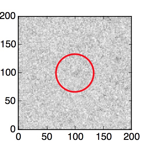 The red circle in the various panels is 1" in radius. The images are 6"x6".