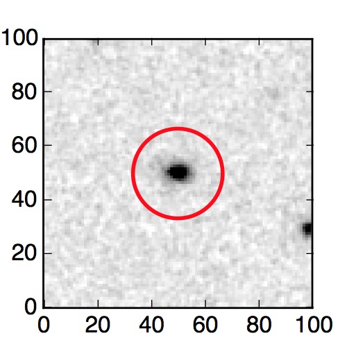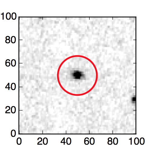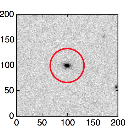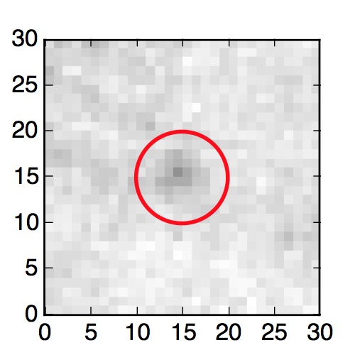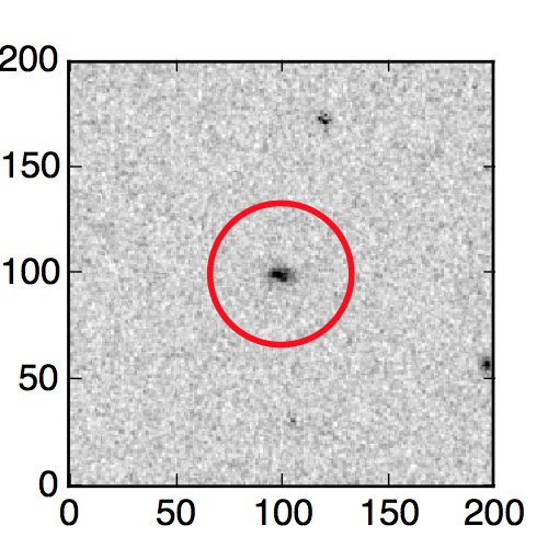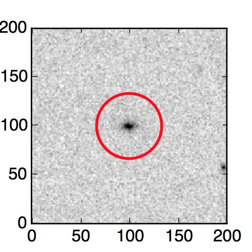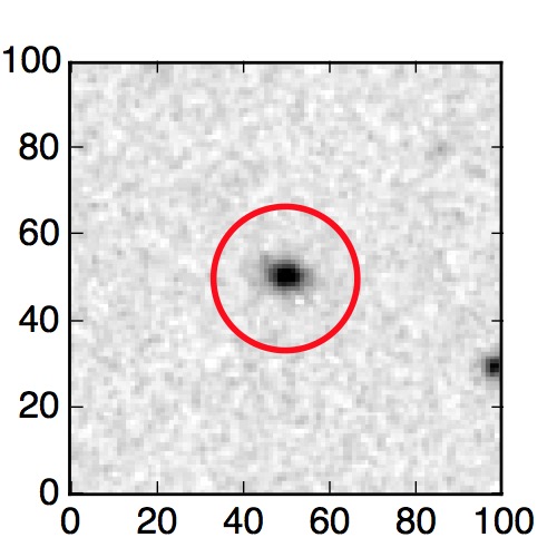 The red circle in the various panels is 1" in radius. The images are 6"x6".