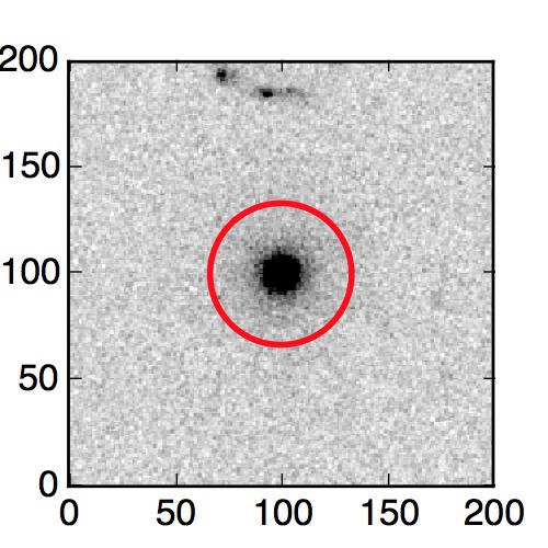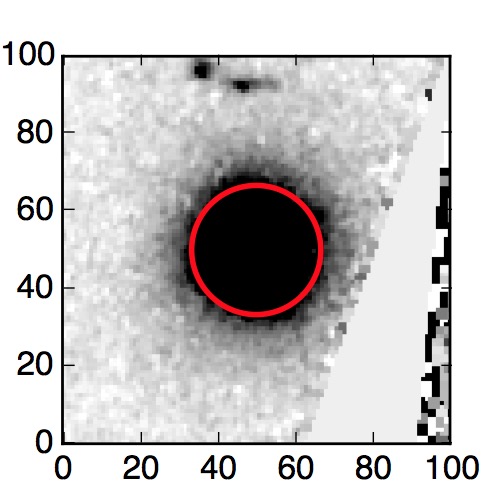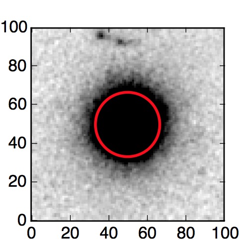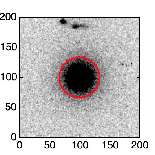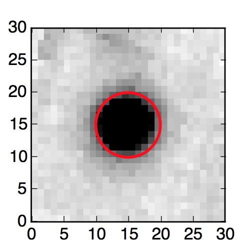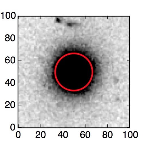 The red circle in the various panels is 1" in radius. The images are 6"x6".