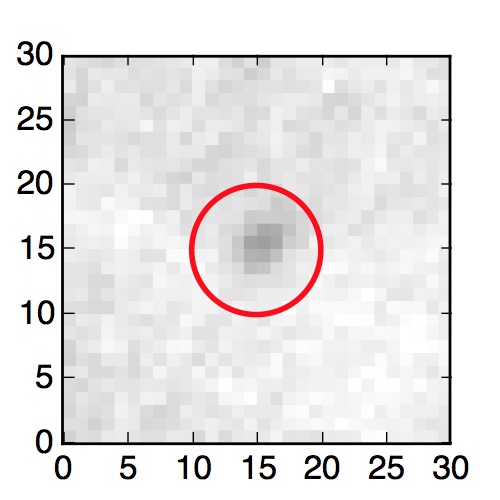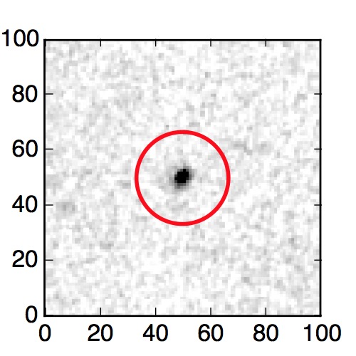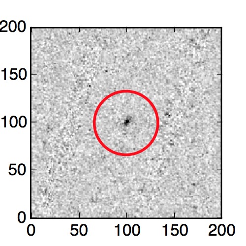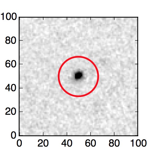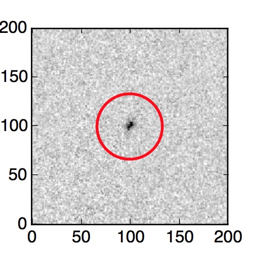 The red circle in the various panels is 1" in radius. The images are 6"x6".