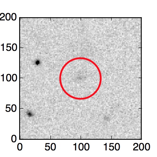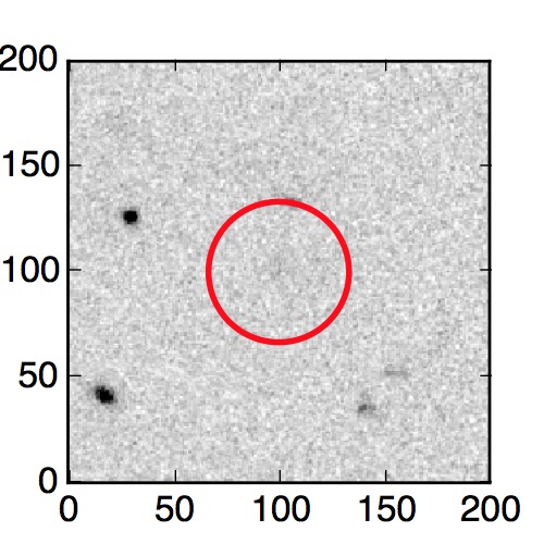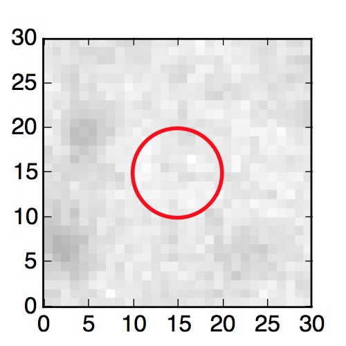 The red circle in the various panels is 1" in radius. The images are 6"x6".
