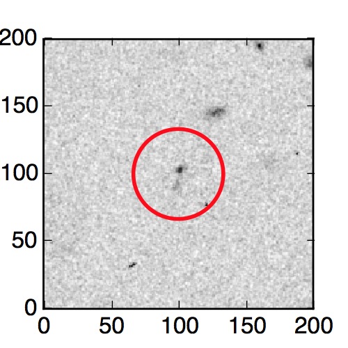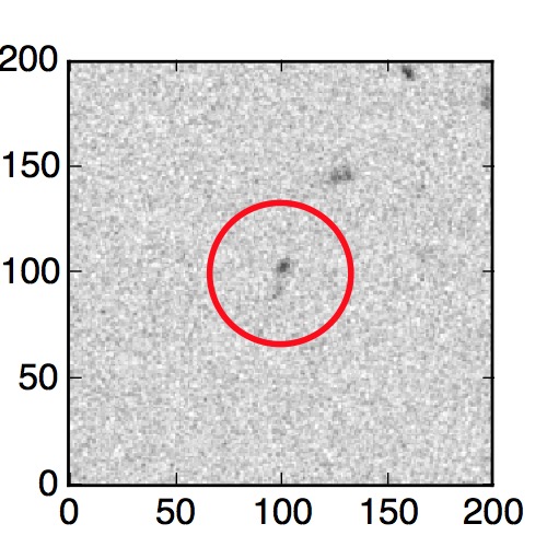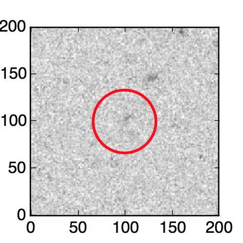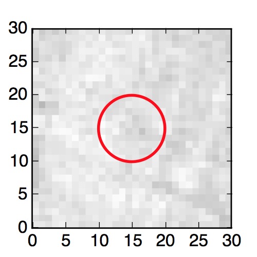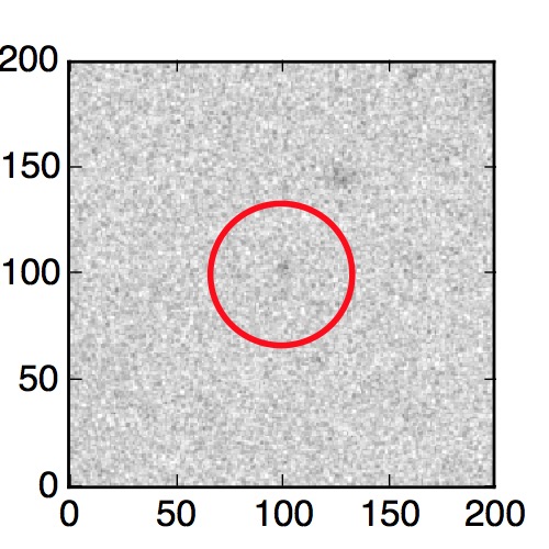 The red circle in the various panels is 1" in radius. The images are 6"x6".