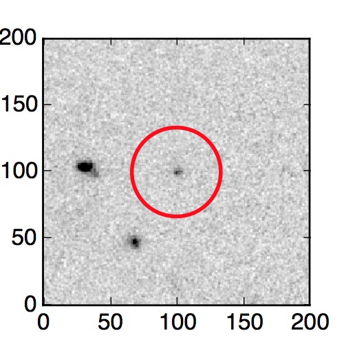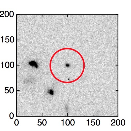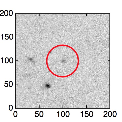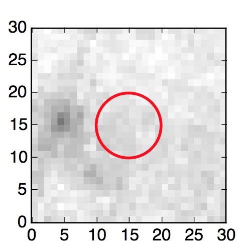 The red circle in the various panels is 1" in radius. The images are 6"x6".