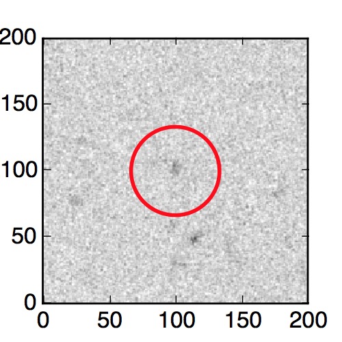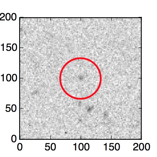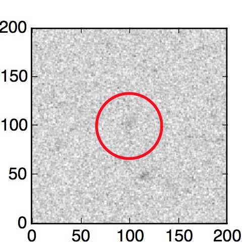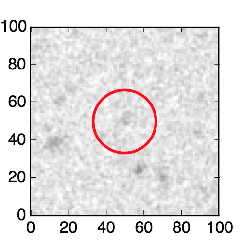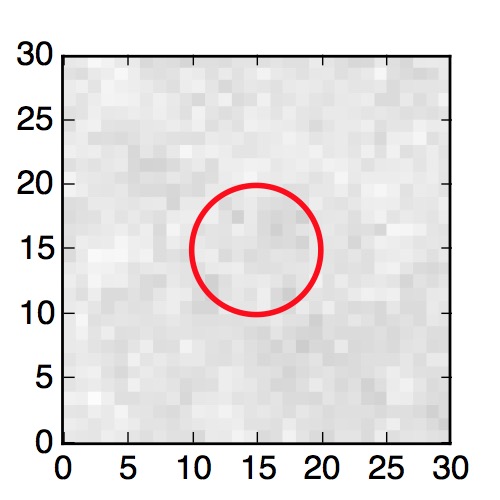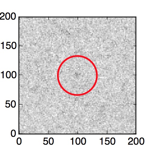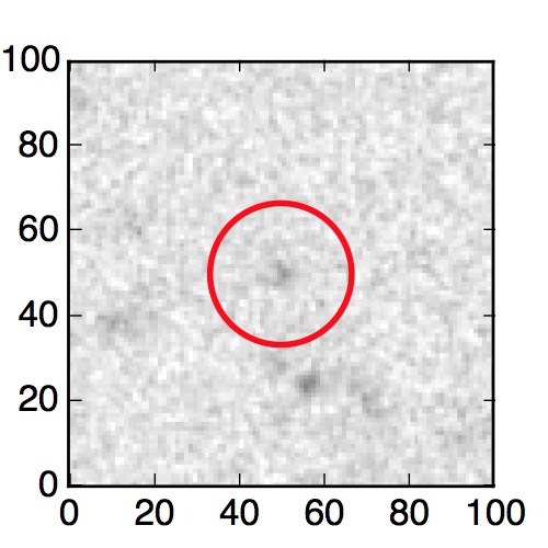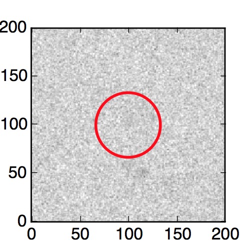 The red circle in the various panels is 1" in radius. The images are 6"x6".