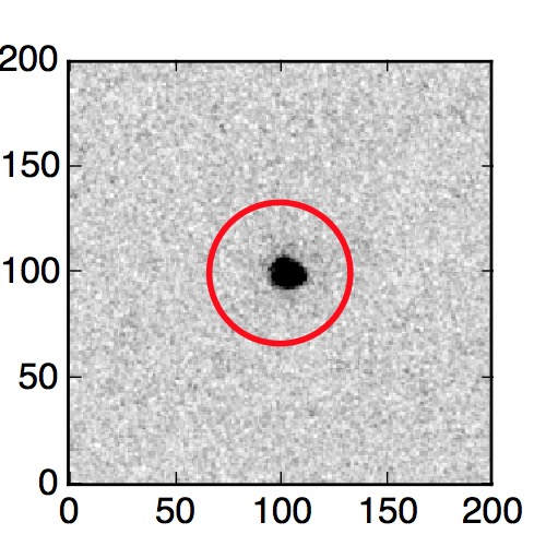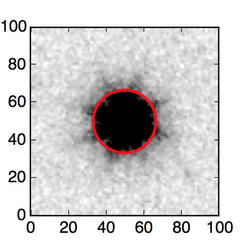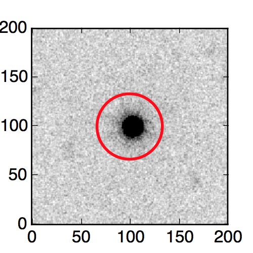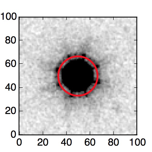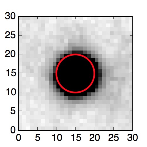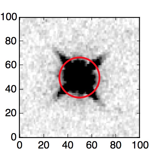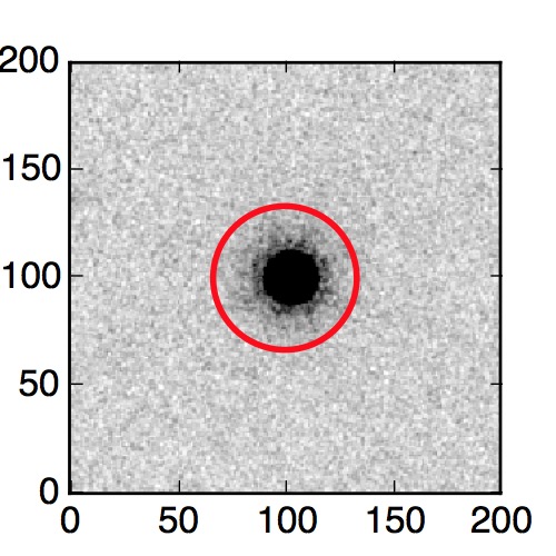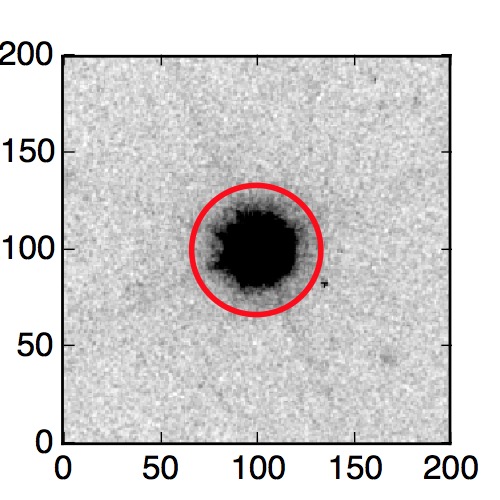 The red circle in the various panels is 1" in radius. The images are 6"x6".