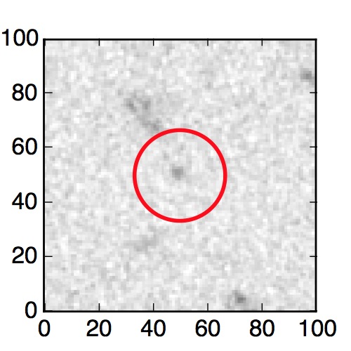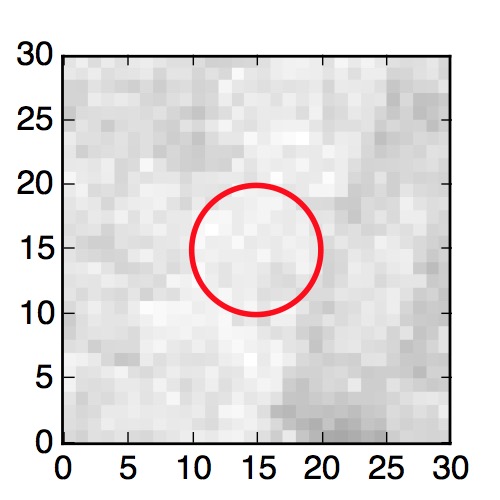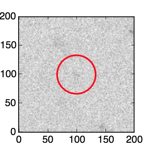 The red circle in the various panels is 1" in radius. The images are 6"x6".