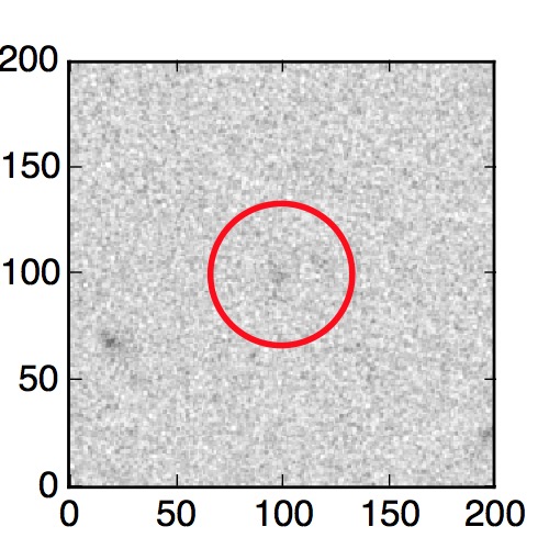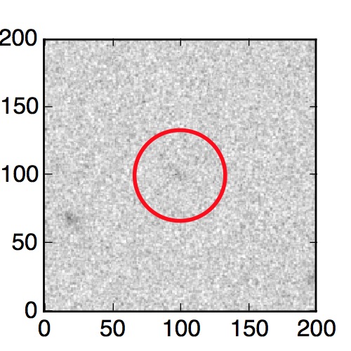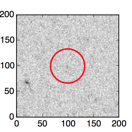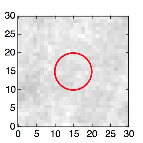 The red circle in the various panels is 1" in radius. The images are 6"x6".