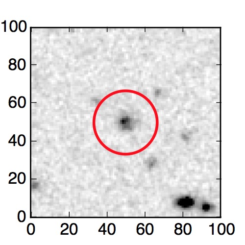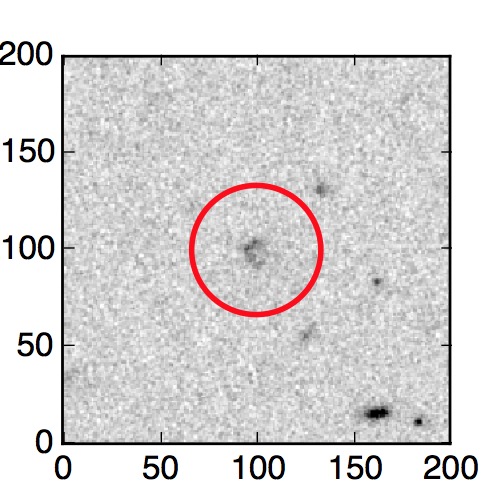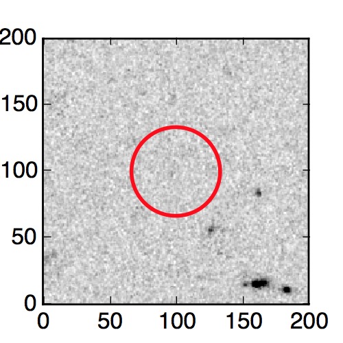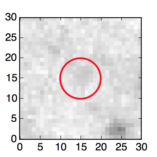 The red circle in the various panels is 1" in radius. The images are 6"x6".