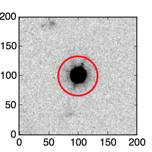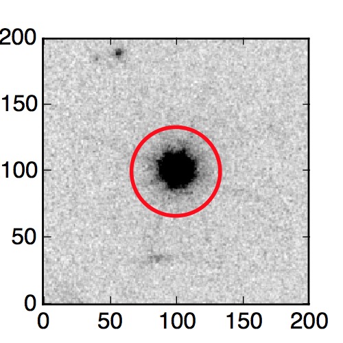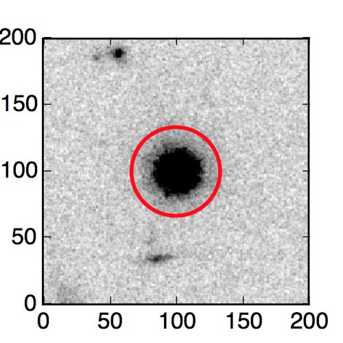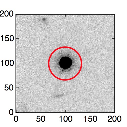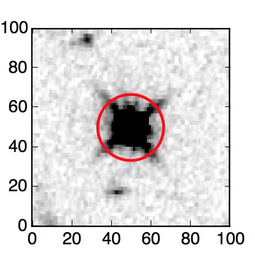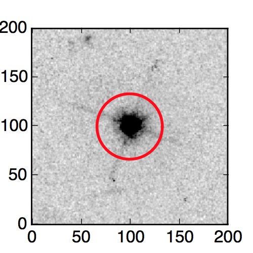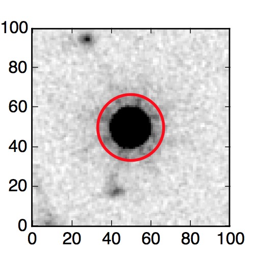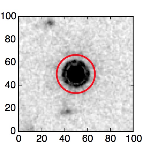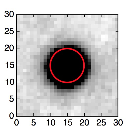 The red circle in the various panels is 1" in radius. The images are 6"x6".