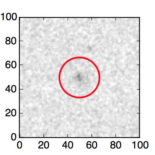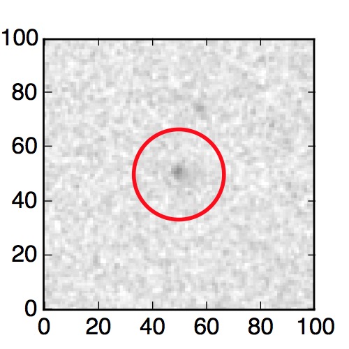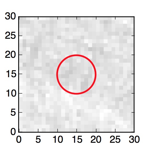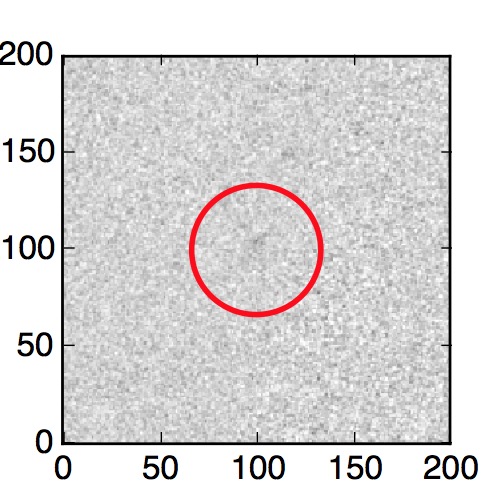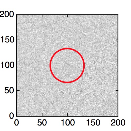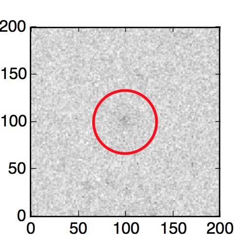 The red circle in the various panels is 1" in radius. The images are 6"x6".
