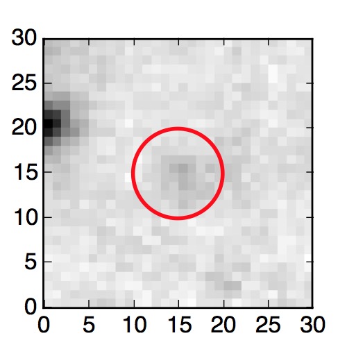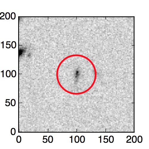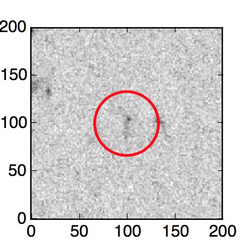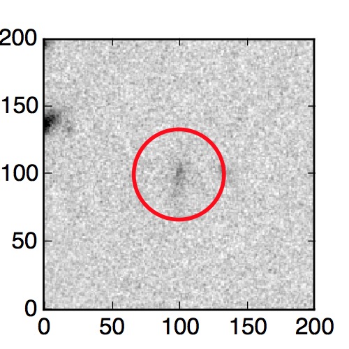 The red circle in the various panels is 1" in radius. The images are 6"x6".