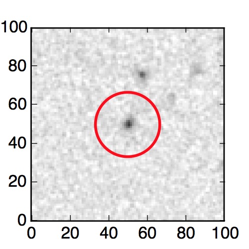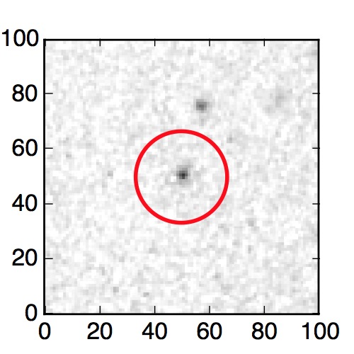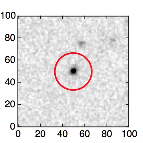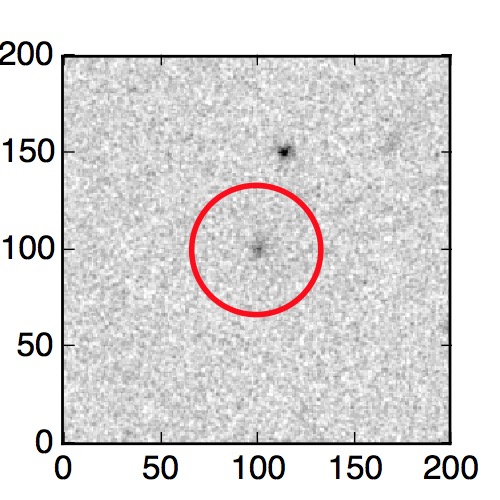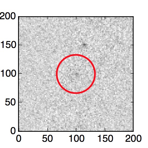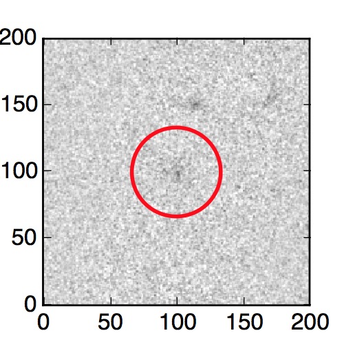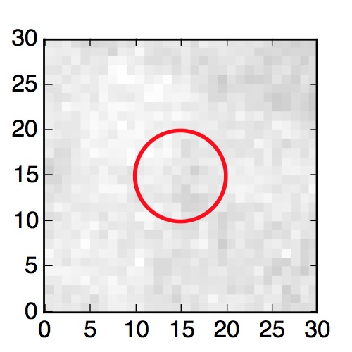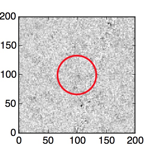 The red circle in the various panels is 1" in radius. The images are 6"x6".