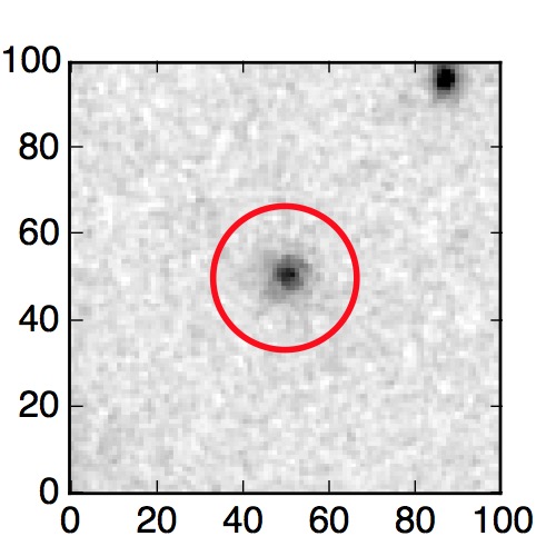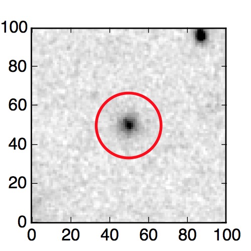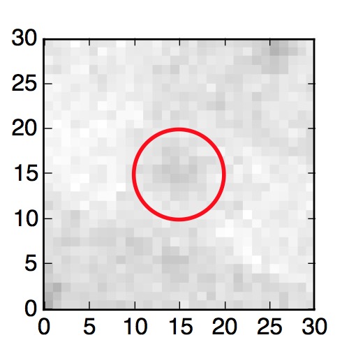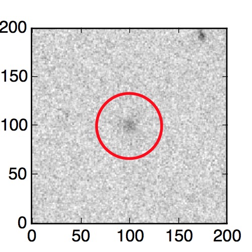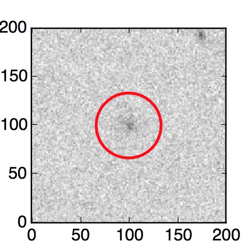 The red circle in the various panels is 1" in radius. The images are 6"x6".