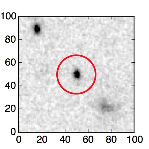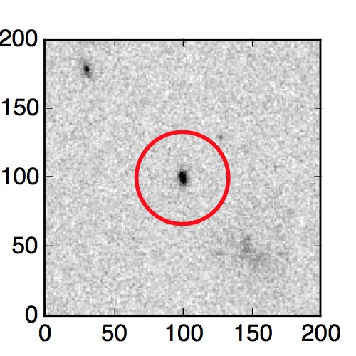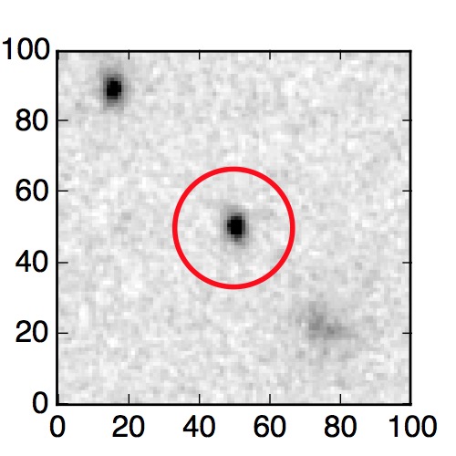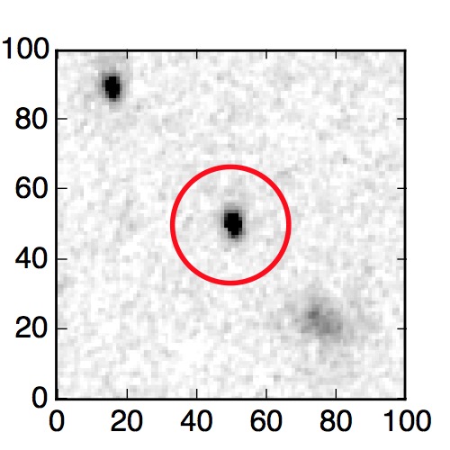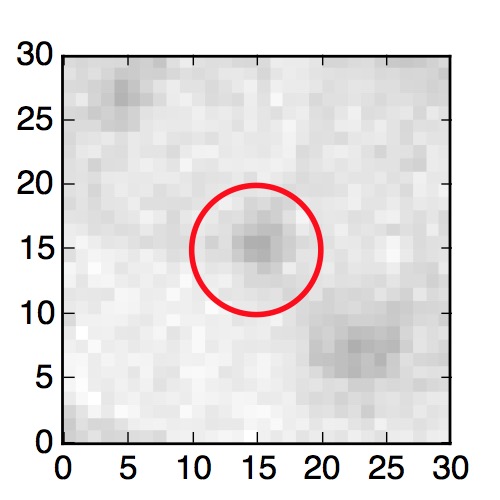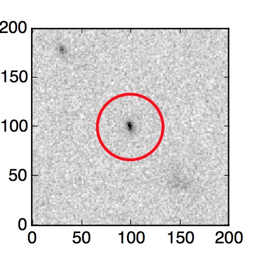The red circle in the various panels is 1" in radius. The images are 6"x6".