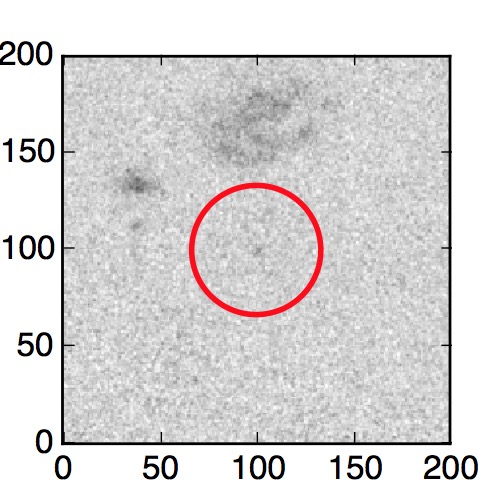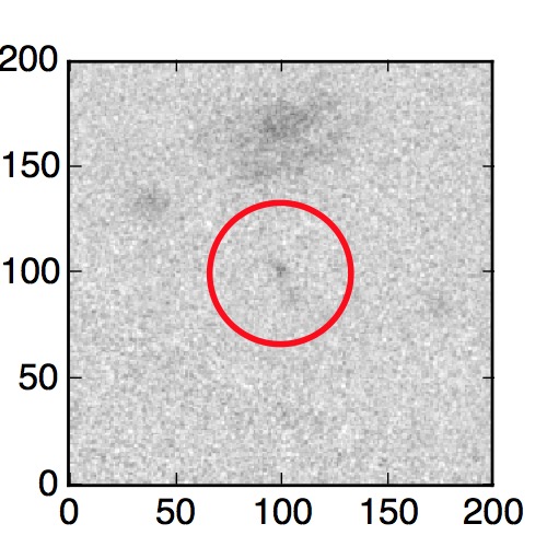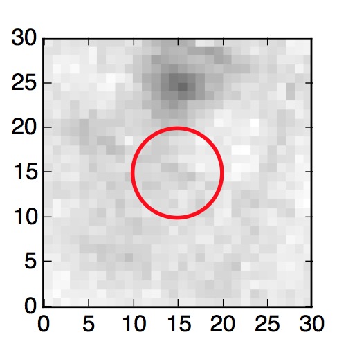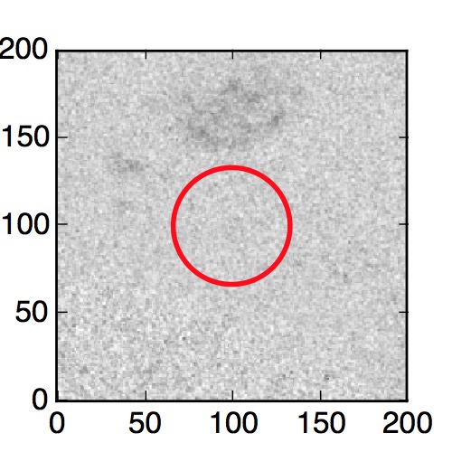 The red circle in the various panels is 1" in radius. The images are 6"x6".