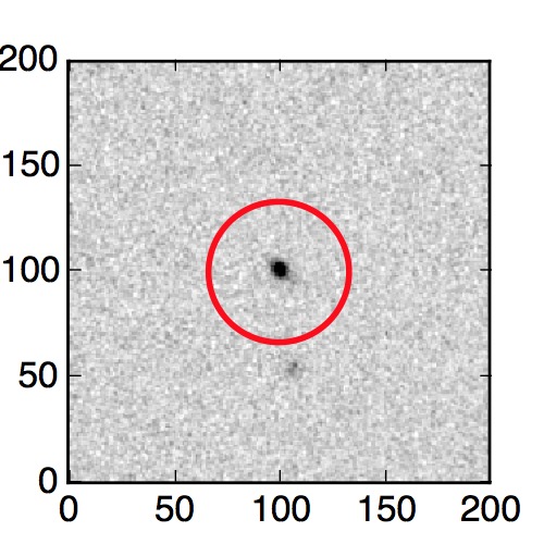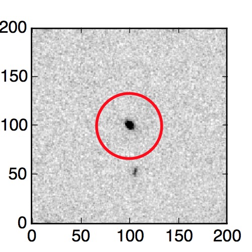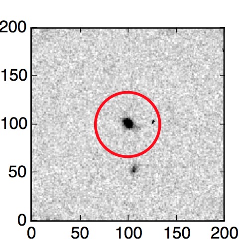 The red circle in the various panels is 1" in radius. The images are 6"x6".