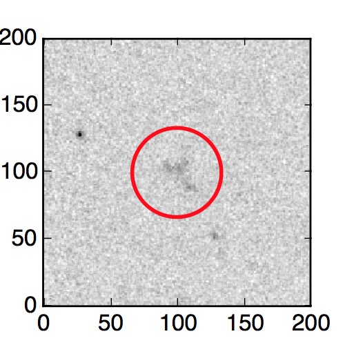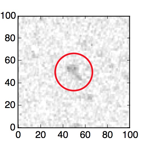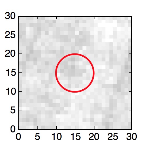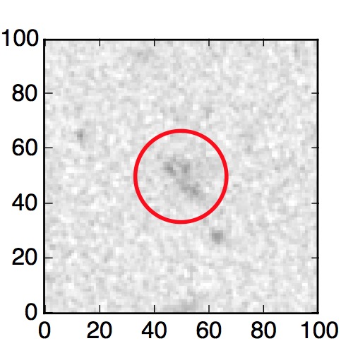 The red circle in the various panels is 1" in radius. The images are 6"x6".