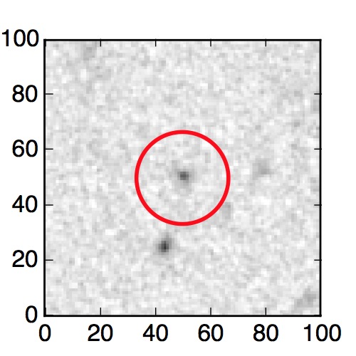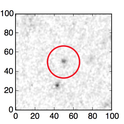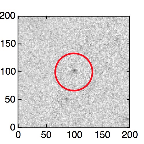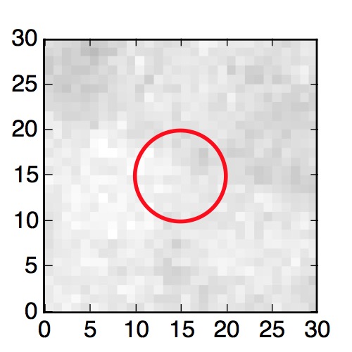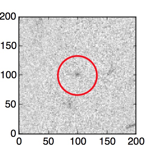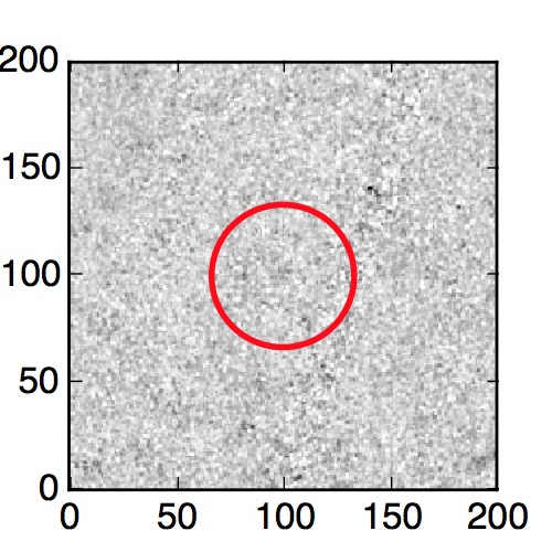 The red circle in the various panels is 1" in radius. The images are 6"x6".