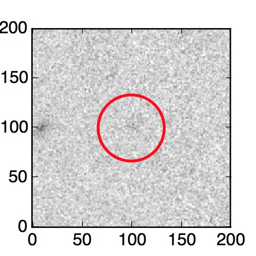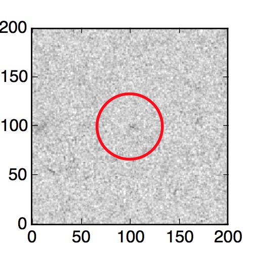 The red circle in the various panels is 1" in radius. The images are 6"x6".