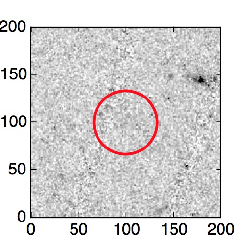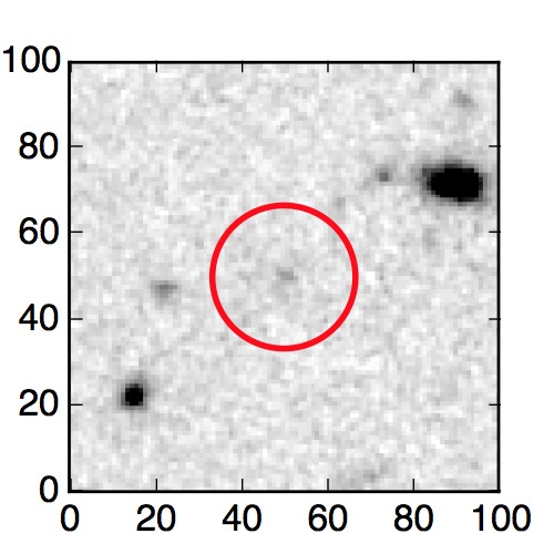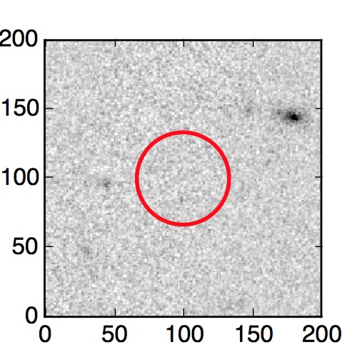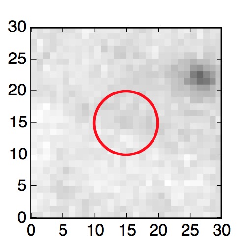 The red circle in the various panels is 1" in radius. The images are 6"x6".