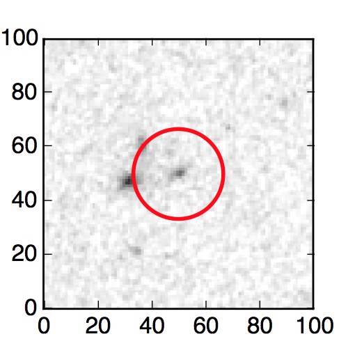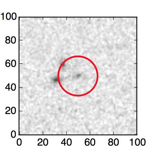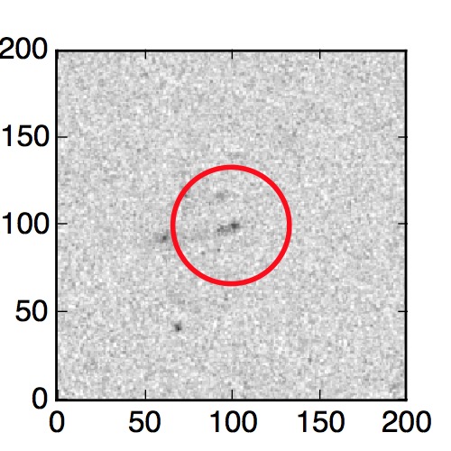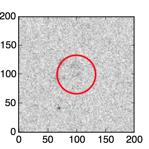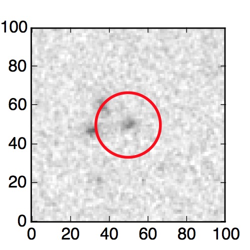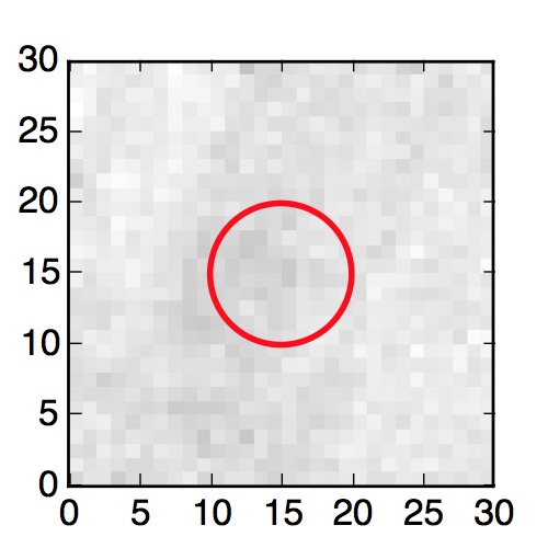 The red circle in the various panels is 1" in radius. The images are 6"x6".