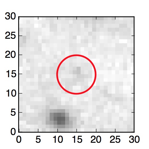 The red circle in the various panels is 1" in radius. The images are 6"x6".