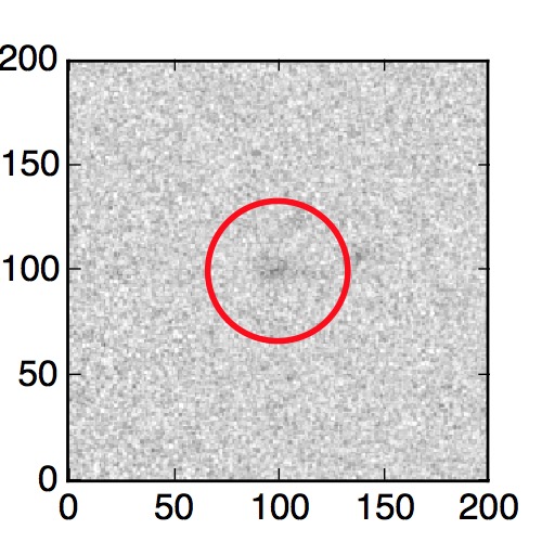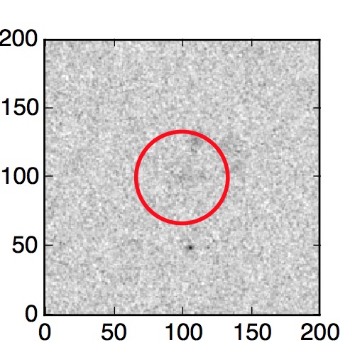 The red circle in the various panels is 1" in radius. The images are 6"x6".