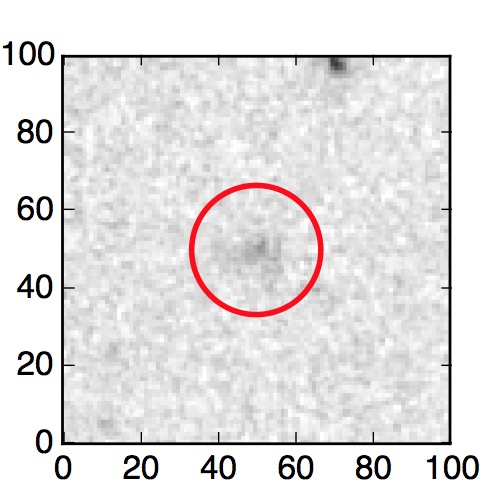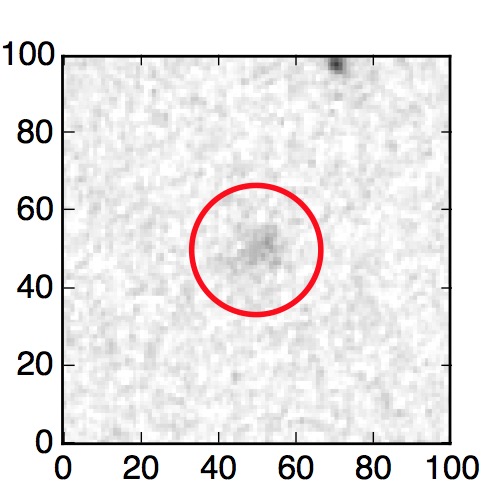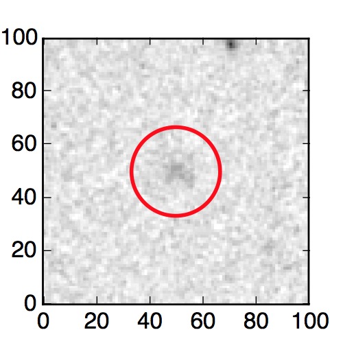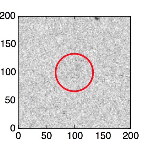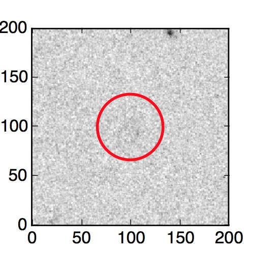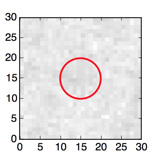 The red circle in the various panels is 1" in radius. The images are 6"x6".