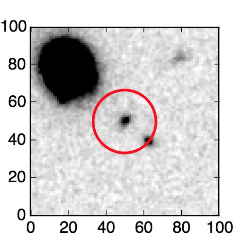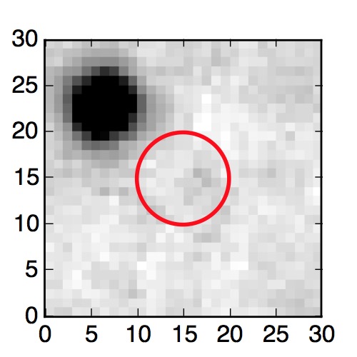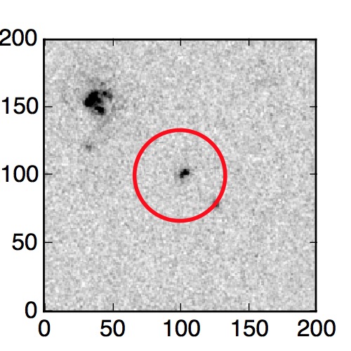 The red circle in the various panels is 1" in radius. The images are 6"x6".