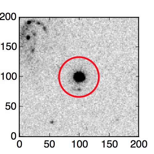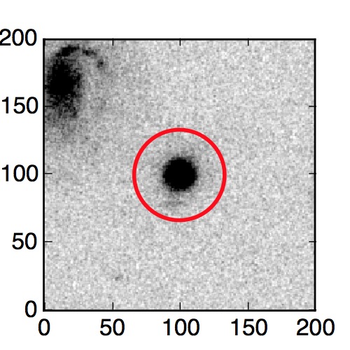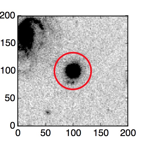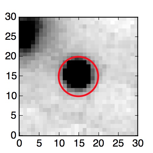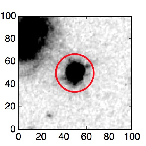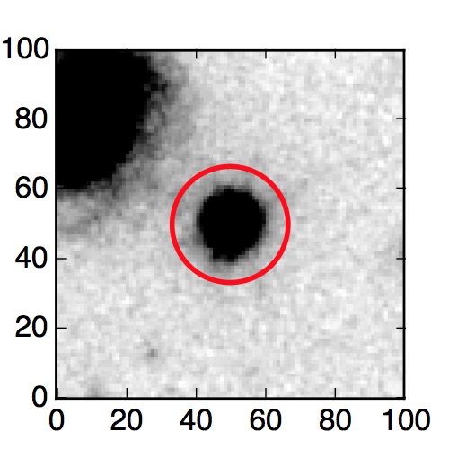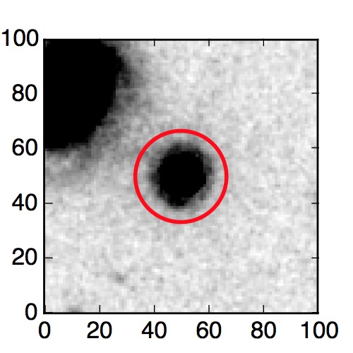 The red circle in the various panels is 1" in radius. The images are 6"x6".