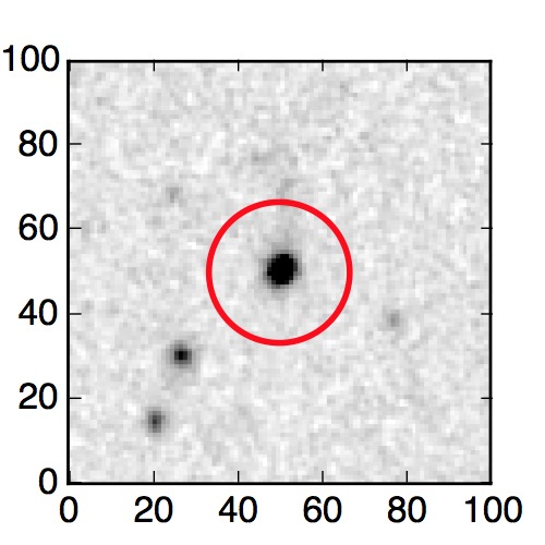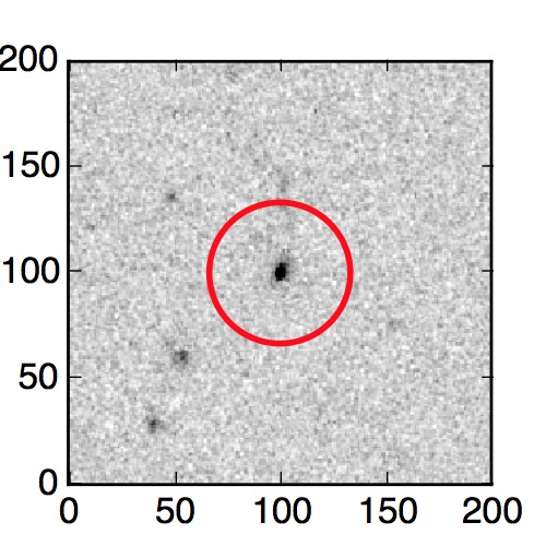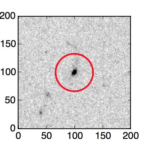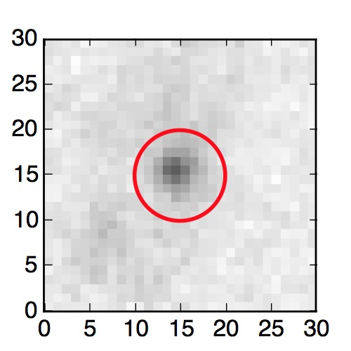 The red circle in the various panels is 1" in radius. The images are 6"x6".