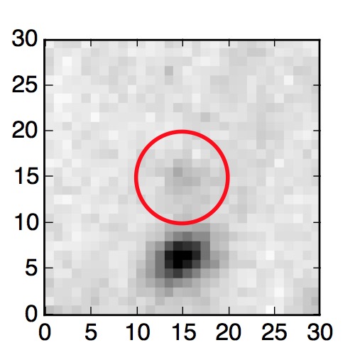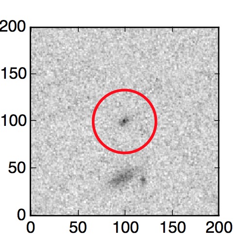 The red circle in the various panels is 1" in radius. The images are 6"x6".