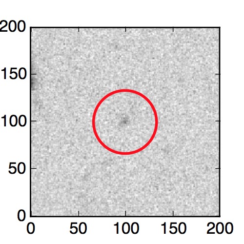 The red circle in the various panels is 1" in radius. The images are 6"x6".